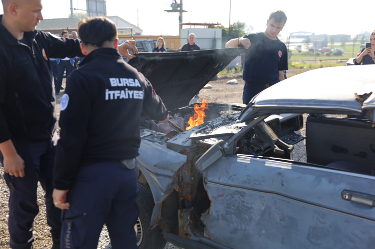 Bursa Büyükşehir Belediyesi iştiraki BURULAŞ ve İtfaiye Daire Başkanlığı iş birliğiyle düzenlenen eğitimlerde, toplam 964 şoföre olası araç yangınlarına doğru ve etkin müdahale yöntemleri hem teorik hem de uygulamalı olarak gösteriliyor.