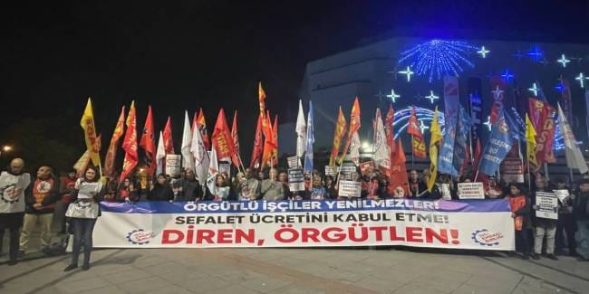 Eylemde, “Patronlar boyun eğmeyeceğiz”, “Bu halk size diz çökmez boyun eğmez”, “Boyun Eğme, Hızsızlardan Hesap Sor”, “AKP’de hesabı emekçiler soracak” sloganları yükseldi.